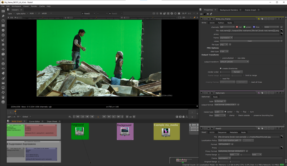 Learn Digital Compositing in Nuke NK101 Lesson 4: Course Notes PDF, Nuke Project Template and images.