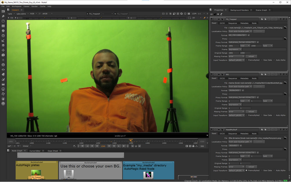 The project file is a simple Nuke template and images so you can follow along on the assignment. In Lesson 6 you will pull a key and composite a moving green screen foreground plate to a photographic background plate.
